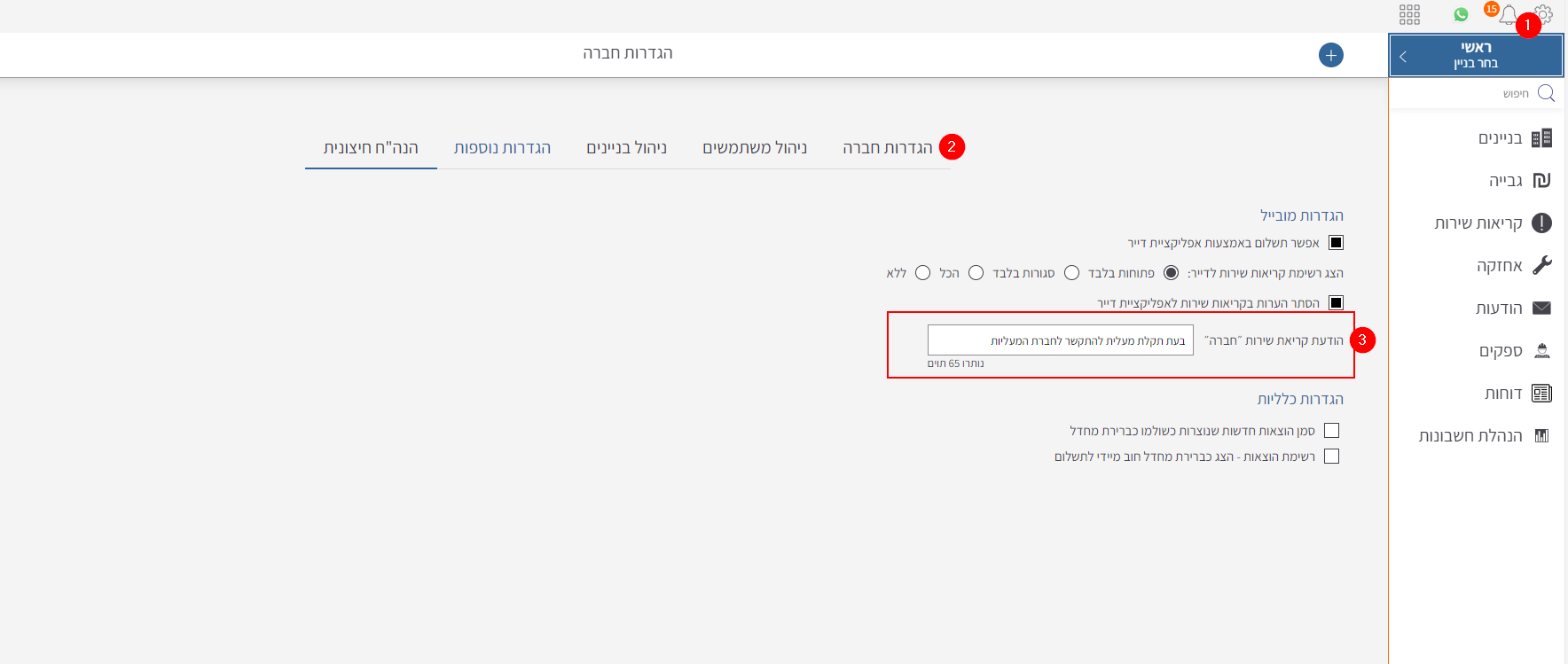 - במקרה בו נותן השירות למעליות הוא גוף חיצוני, אינכם רוצים שדיירים יפתחו קריאות, אלא שייצרו קשר ישירות עם חברת המעליות