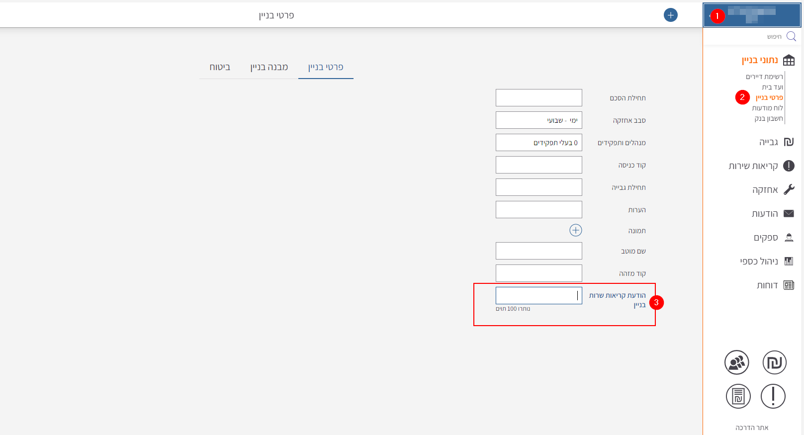 בחירת בניין > נתוני בניין > פרטי בניין > כתיבת מודעה