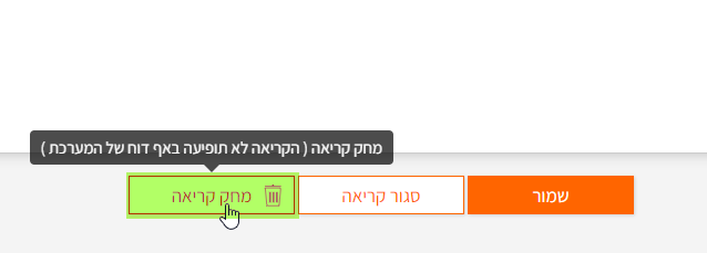 חשוב לדעת, מחיקת הקריאה אינה ניתנת לשחזור והפרטים לא יופיעו בדוחות. כלומר שהקריאה תימחק לגמרי מהמערכת.