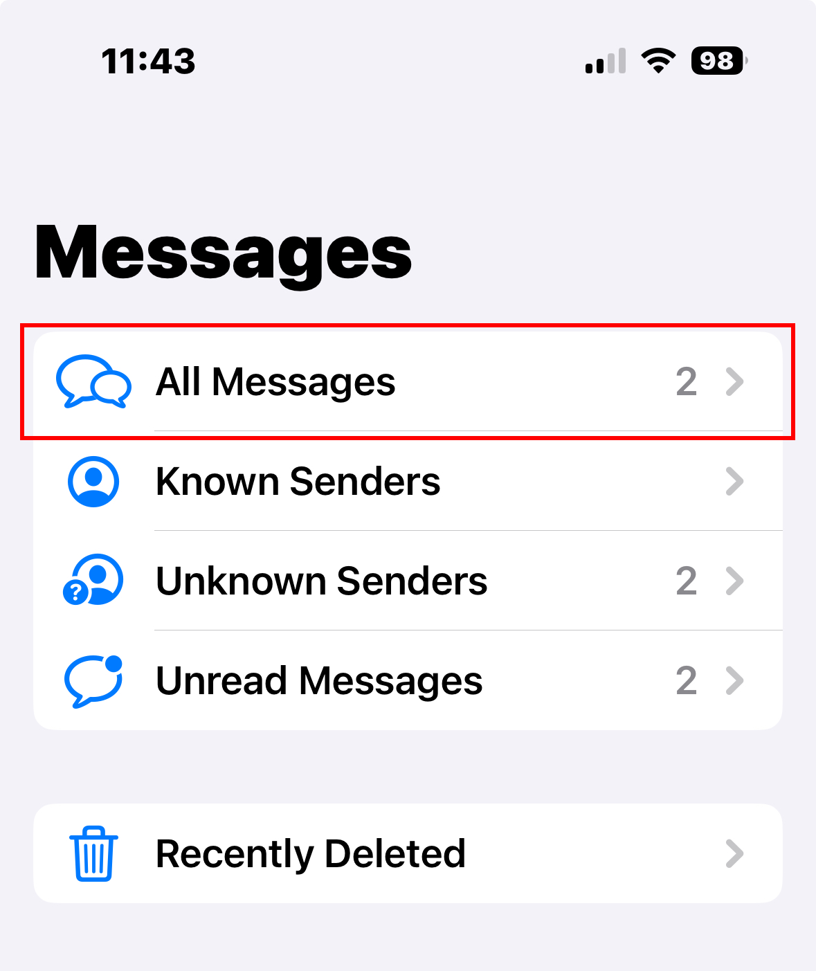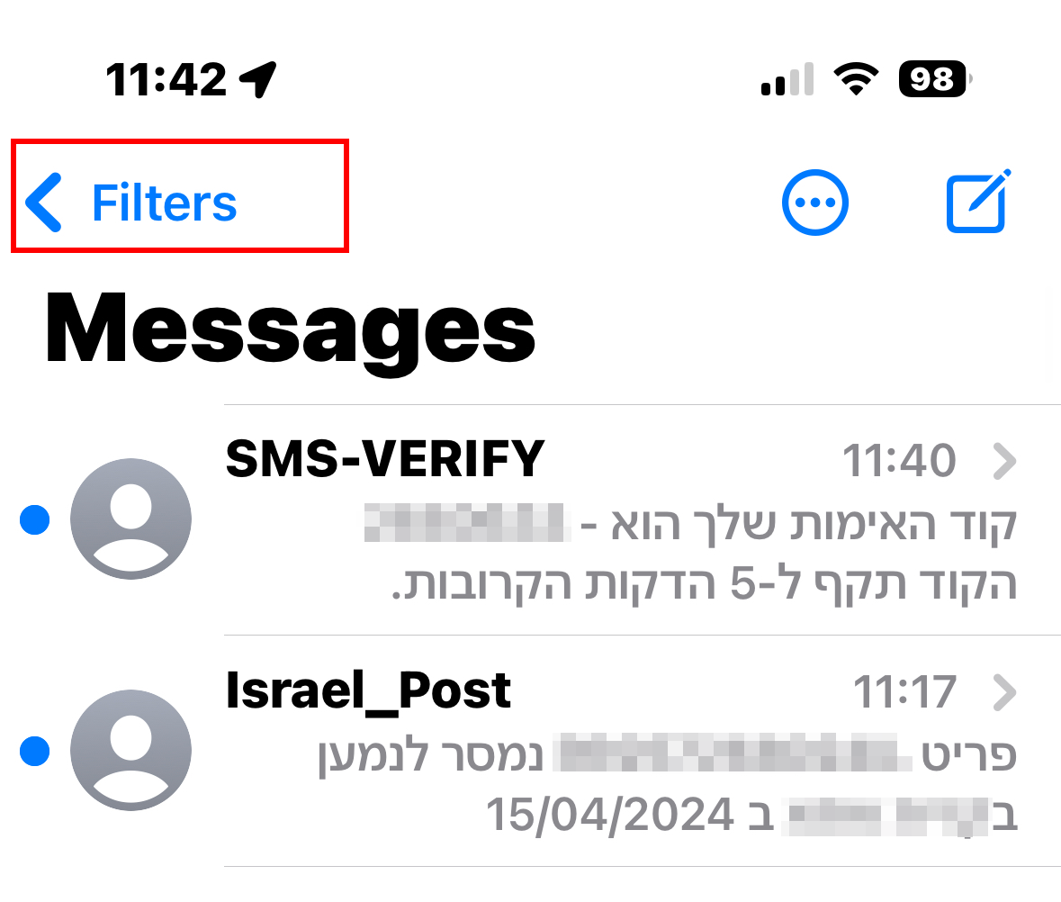 - הודעות משולח שאינו איש קשר עלולות להתחבא ויש דרך לראות אותן ע"י צפיה בהודעות מ"שולחים לא מוכרים"