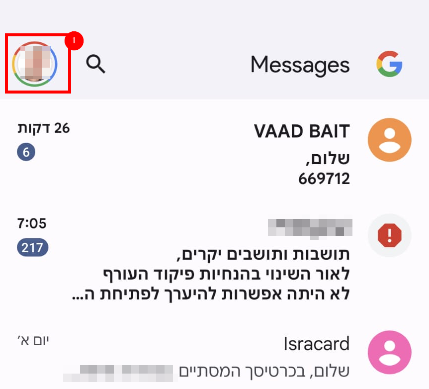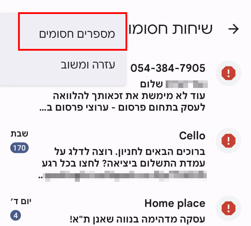 כניסה לממשק הודעות > בחירת המשתמש > שיחות חסומות וספאם > תפריט שלוש נקודות > מספרים חסומים > הגדרת המספר של VAAD BAIT כבטוח שאינו ספאם