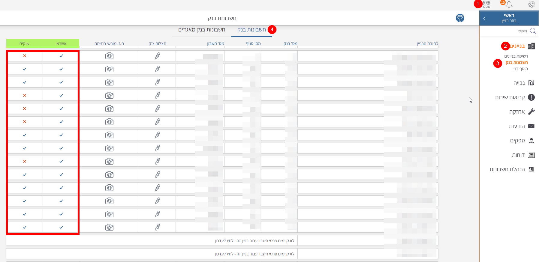 בכל פעם שאתם מוסיפים חשבון בנק חדש / בניין חדש למערכת, עליכם לבצע אימות חשבון בנק