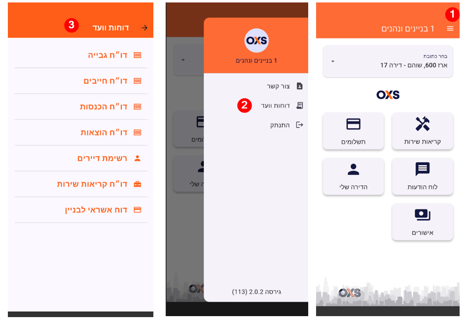 באפליקציית הדייר כך מגיעים לרשימת הדוחות: