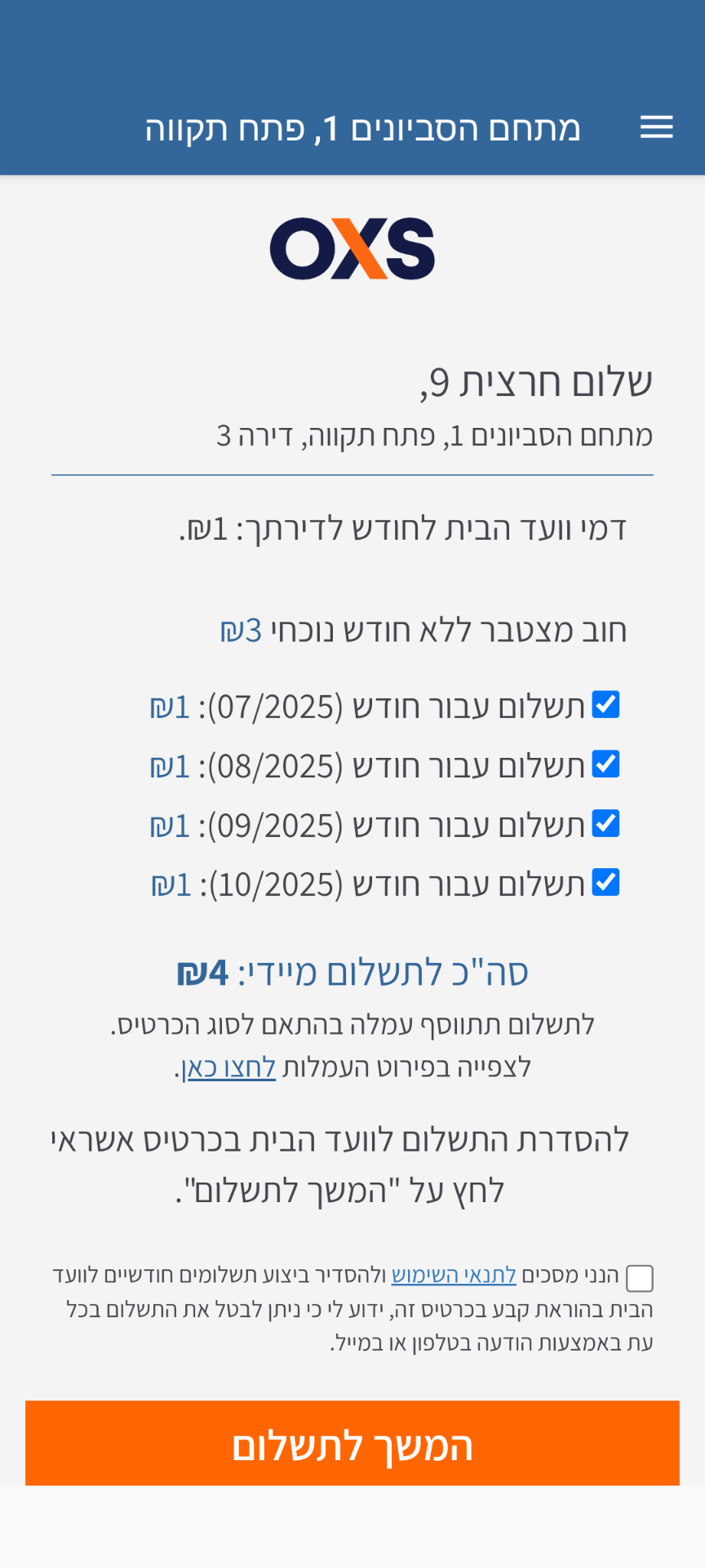 כאשר דייר מעוניין להסדיר חוב קיים, ניתן לבצע את החיוב באופן מהיר ובטוח דרך אפליקציית oxs manager