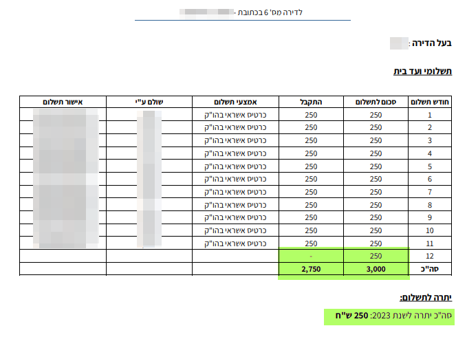 וזהו דוח של דייר אשר נותר לו חוב לתשלום
