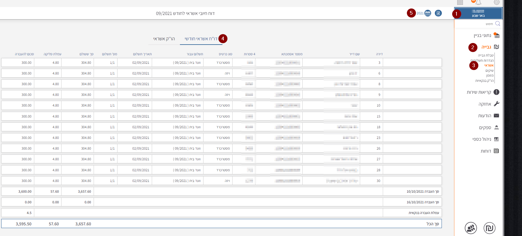 בחירת בניין > תפריט גביה > דוח אשראי > אשראי חודשי