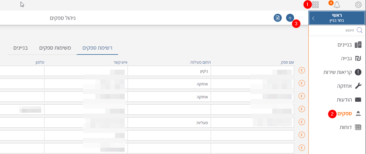 - צפייה בספקים הפועלים בכל בניין