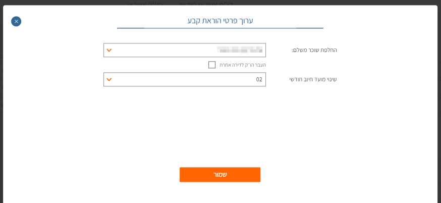 2. בהחלפת משלם נבחר "העבר הו"ק לדירה אחרת"+ מס' דירה ודייר