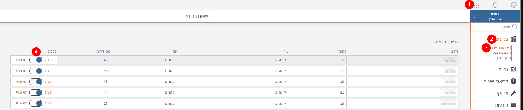 תפריט ראשי > בניינים > רשימת בניינים > שינוי סטטוס ל־"לא פעיל"