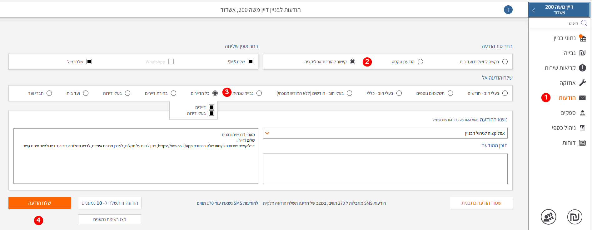 שלב 3: שליחת הודעה ראשונה לדיירים